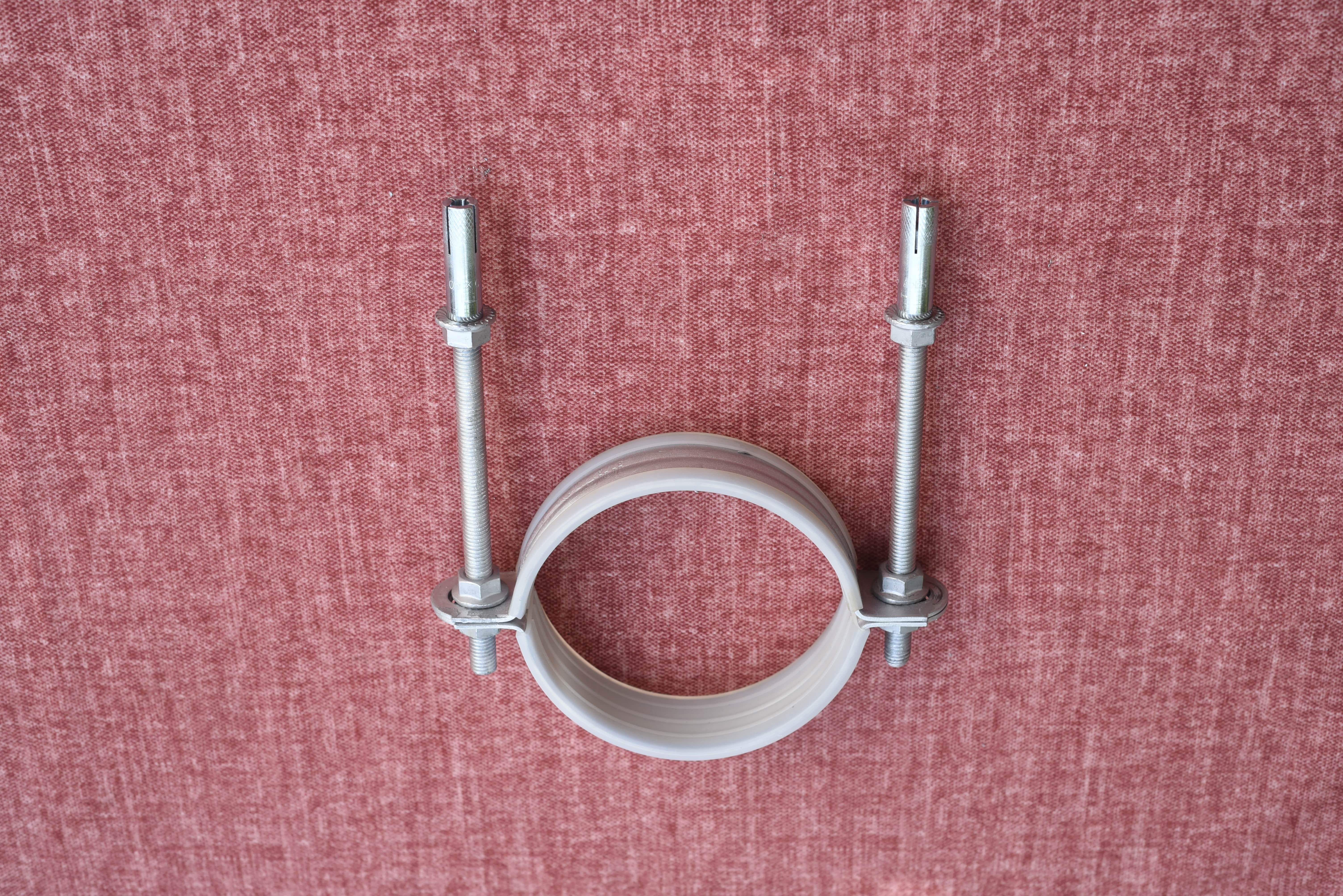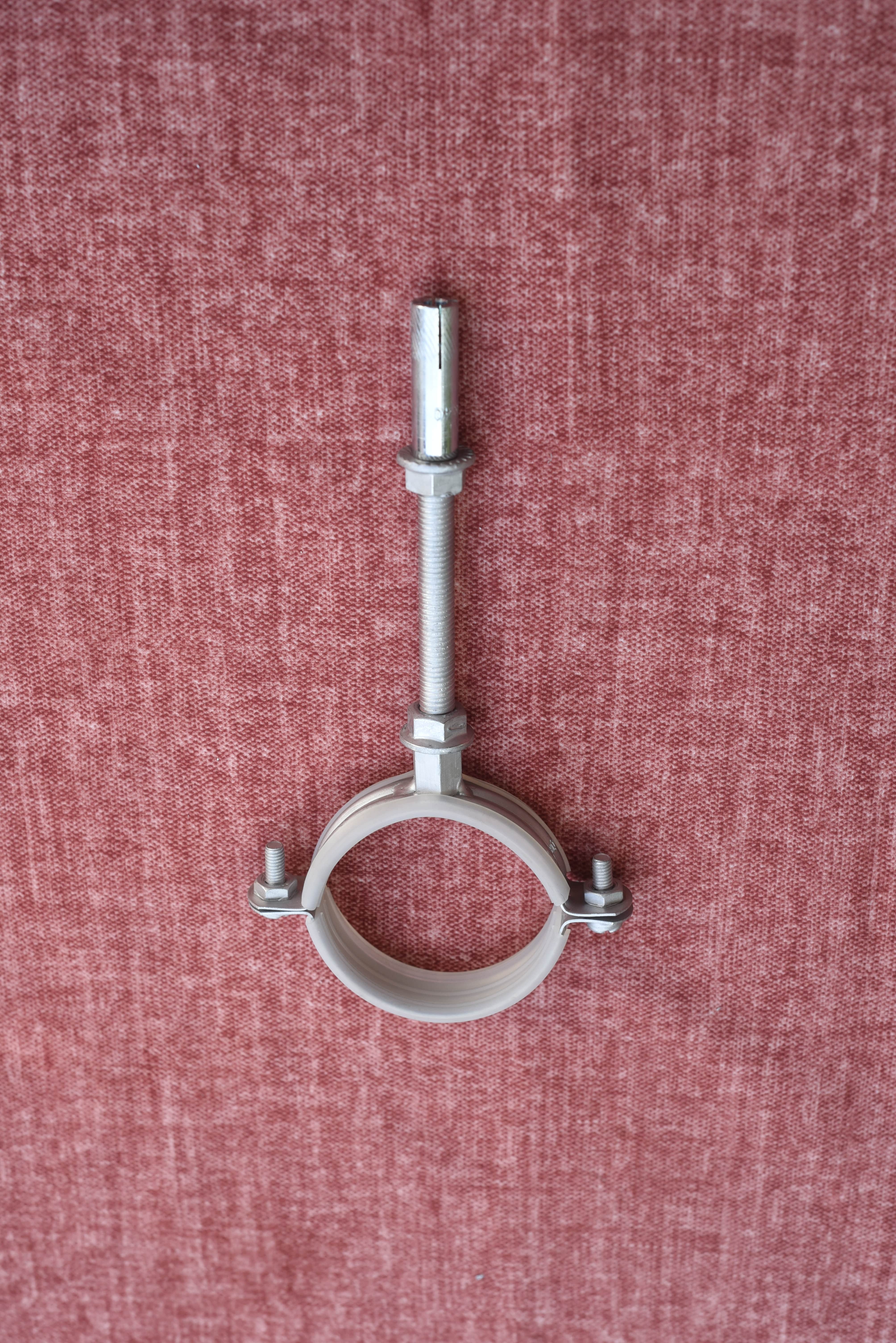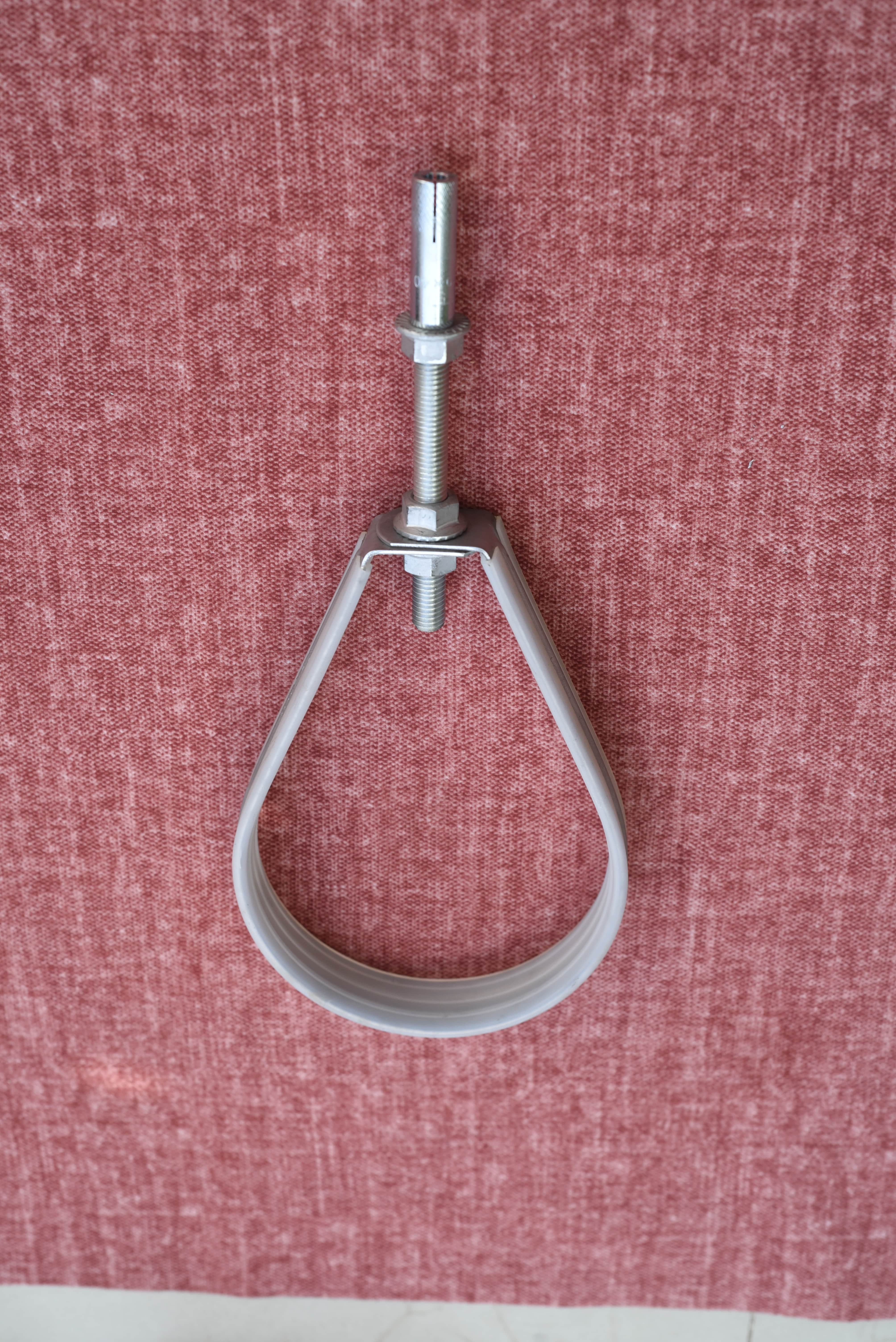 PIPE HANGER CLAMP WITH TRANSPARENT RIBBED SILICON RUBBER MOUNTED.