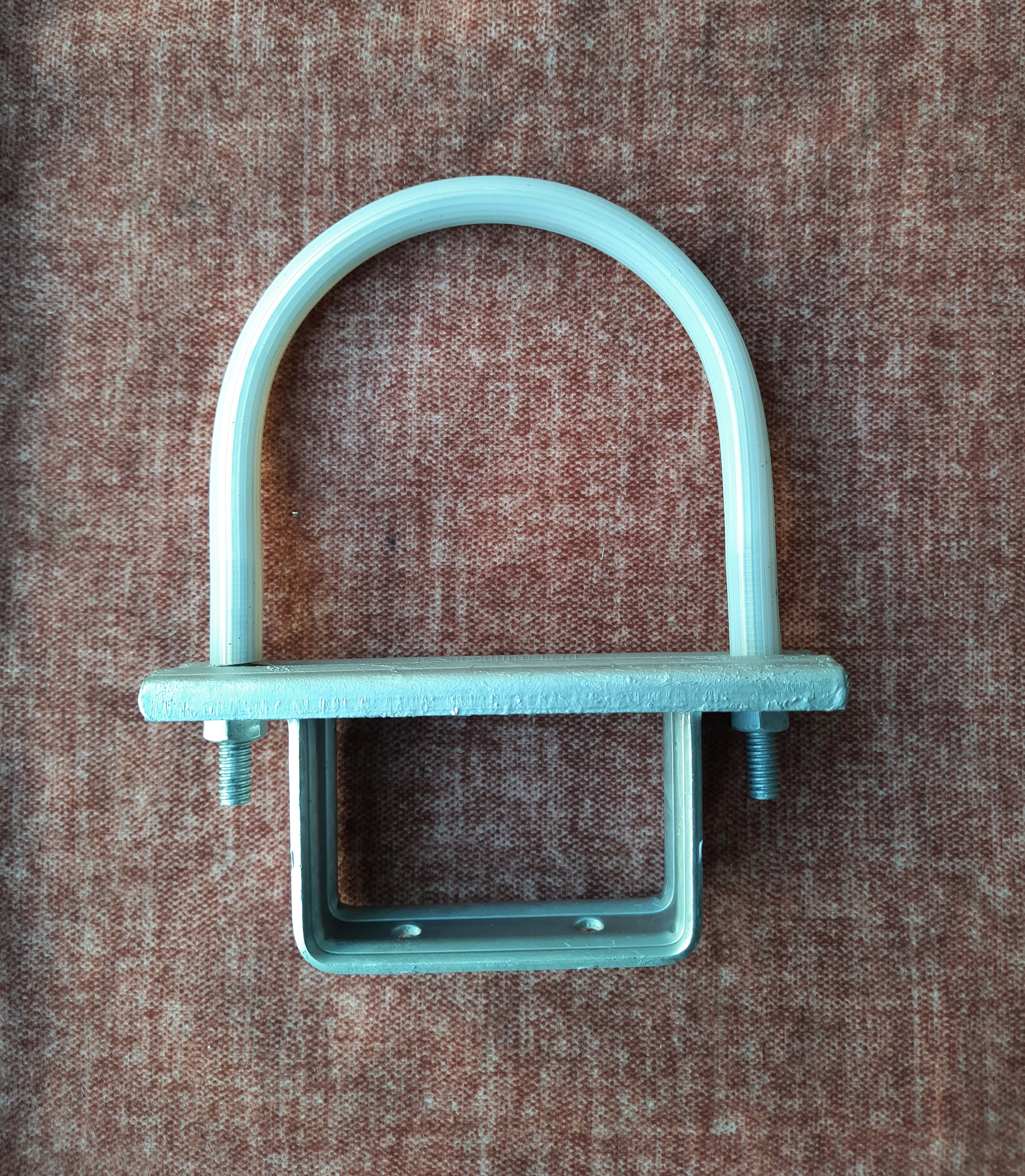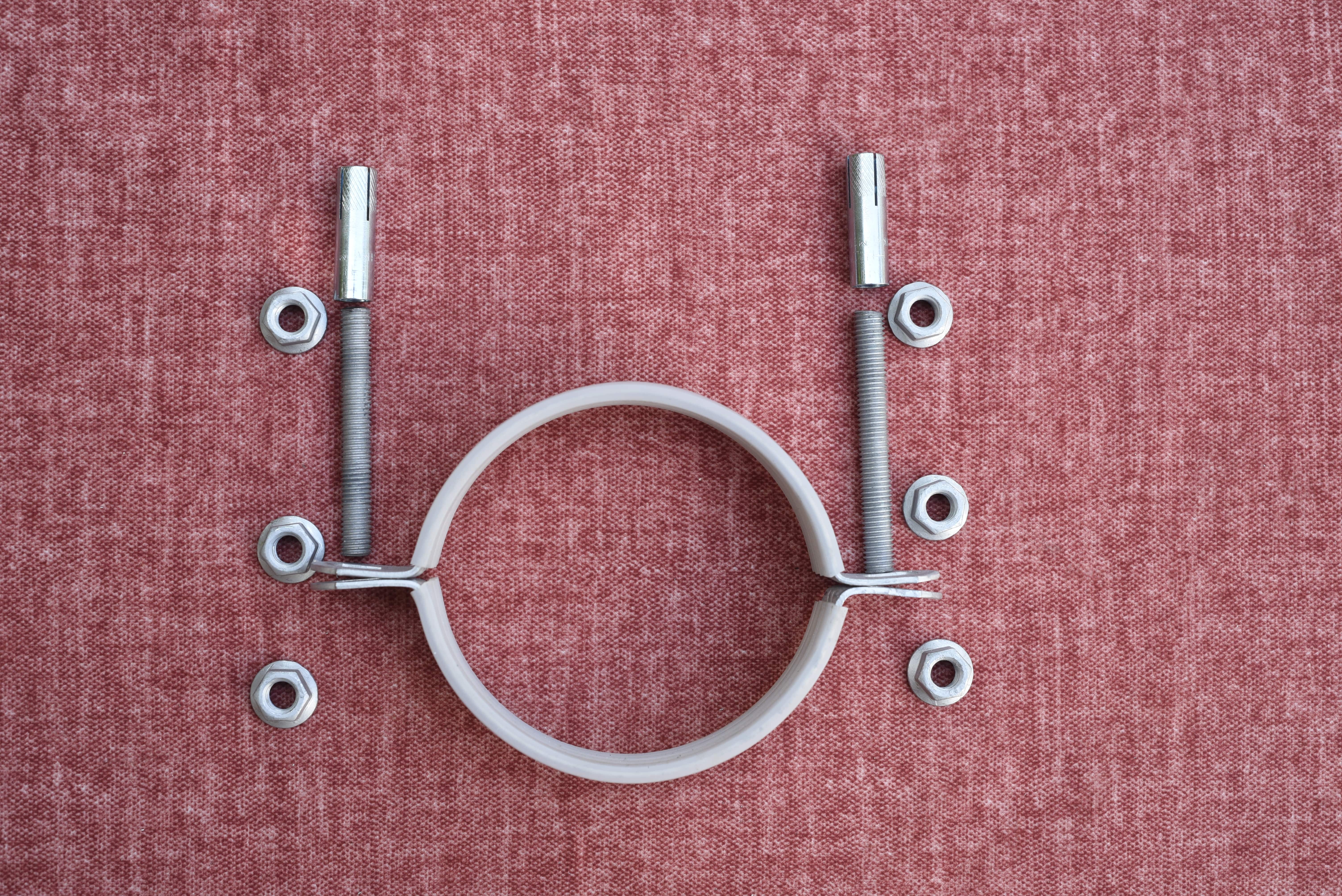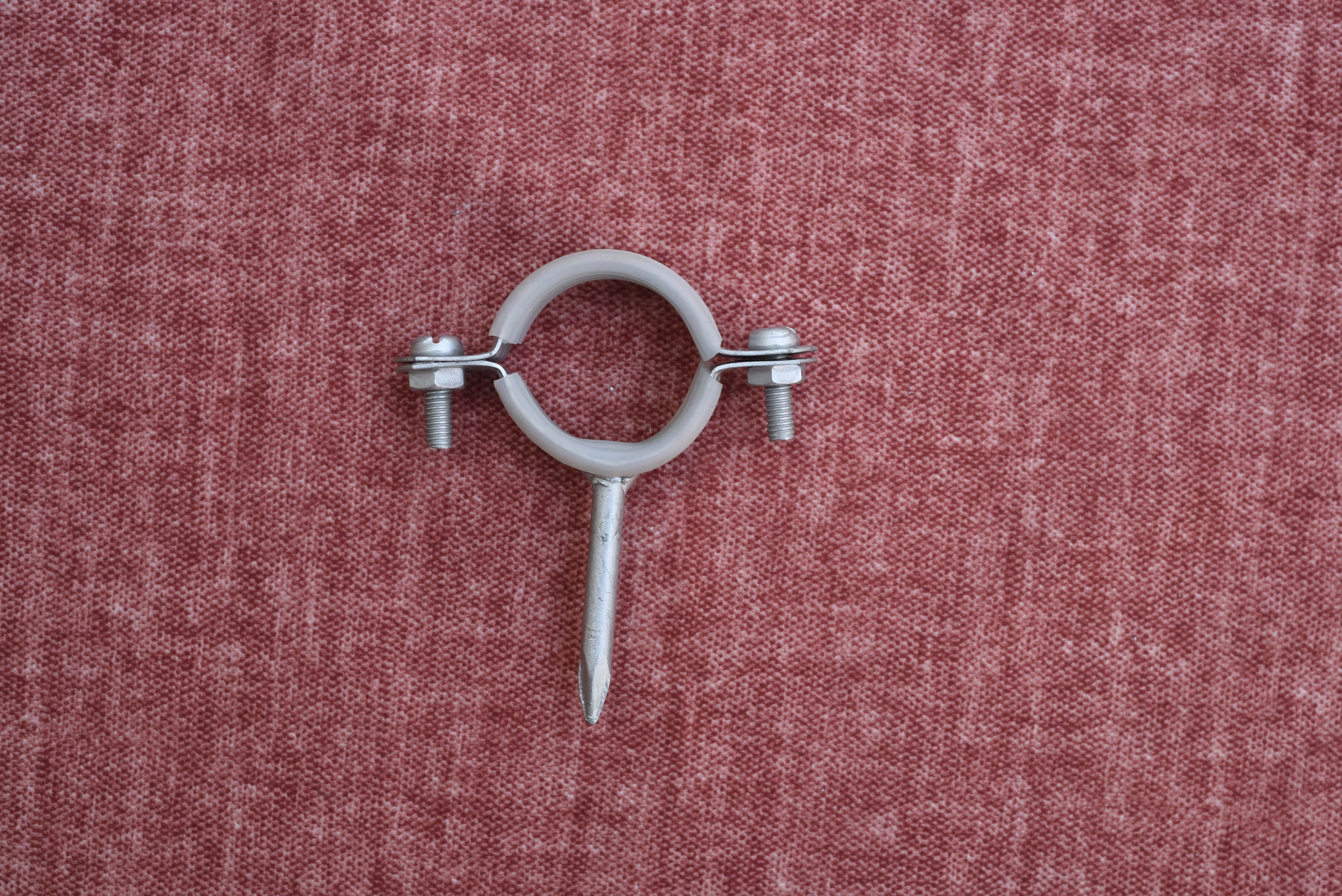 PIPE HANGER CLAMP WITH TRANSPARENT RIBBED SILICON RUBBER MOUNTED.